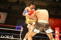 3R、チョンヤンはボディ・顔面とストレートを飛ばし、伊藤の視線が下に向いていたか、ここで跳びヒザを放って直撃。伊藤がバタリと倒れ、チョンヤンのKO勝利となった。