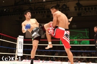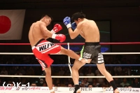 「(試合を振り返って?)とりあえず勝ててメチャクチャ、ホッとしてます。いろいろ背負う試合だったので。移籍して一発目の試合目っていうのもありましたし、中国の選手には前回も負けてますし、前戦も負けてたんで、絶対に勝たなきゃいけない試合でした。相手がけっこう有名な選手だったので、気持ちを入れて挑みました。(対戦相手の印象は?)映像で観るとメチャクチャ、パンチとローでガンガン前に出てくるんですけど、今回はそれを活かさない戦法で戦うのを意識して。そんなにメチャクチャやりづらいという印象ではなかったです。(移籍先のK-1 GYM SAGAMI-ONO KRESTの練習の成果が出た?)やっぱり、今日の大会で大将戦に出る卜部功也選手をはじめ、山崎秀晃選手、佐々木大蔵選手、KRESTには世界トップレベルの選手がたくさんいるので。そのかたがたと練習できているのは大きかったと思います。(今後の目標は?)今後もこのままベルトを目指して突き進みたいと思います」