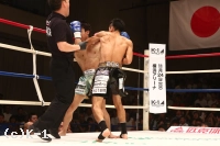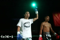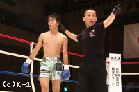 佐々木はさらに左ストレートでとらえ、左ミドルから返しの右フックで3度目のダウンを与え、1Rで試合を決めた。