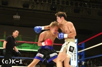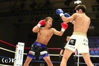 2R、藤田は小刻みに体を動かし懐に入らんとするが、鈴木も左右の蹴りをロー・ハイ・ミドルと蹴り分け、容易には藤田を接近させない。藤田は鈴木のパンチをヘッドスリップしてかわすと、すぐさまストレート、フックを打ち返す。パンチ狙いの藤田は鈴木の蹴りが終わった直後にパンチを返しリターンヒットを狙っていく。