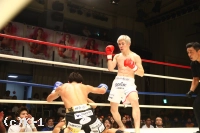 「(試合を振り返って?)思っていたよりも研究されてたなって思いました、1R終わってみて。でも自分も地力がついたんで、それがKOにつながったと思います。もっと手数でドンドン来ると思って、打ち合いになったら倒せるかなと思うんですけど、意外と大振りで来たので。僕の攻撃を出す前に、相手の攻撃が大振りで来るから、自分のやりたいことが何もできなかったなっていうので、対策立てられらたなと思いますね。