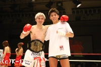 (ファンにメッセージを)今日は応援ありがとうございました。第9代KRUSHスーパー・フェザー級チャンピオンなんですけど、この先は僕が返上しないとチャンピオンは出ないと言ったんで、僕以降はチャンピオンは出さないようにがんばっていきますんで、応援よろしくお願いします」