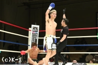 立ち上がった桑田に希山は再びジャストのタイミングで左フックを決めてダウンを追加し、Krushデビュー戦を勝利で飾った。