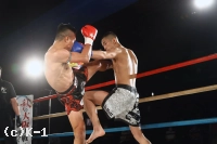 1R、パンチを警戒してかガードを高く上げてゴンナパーは向かう。篠原は左ボディフック、左フック、右アッパーと振るっていく。ゴンナパーも左ストレートを伸ばしてヒットする。ガードを上げて前進しプレッシャーを掛けるゴンナパー。篠原はロープを背にして止まらず、右ボディストレート、左フックと入れて横に回る。
