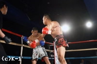 2Rもゴンナパーはガードを上げてプレッシャーを掛ける。ロープ・コーナーを背にさせられる篠原。両者左フックが相打ちとなる。1Rよりゴンナパーの圧力から逃げられなくなっている篠原。ゴンナパーはジワリジワリと左ミドルと左ローで篠原を攻める。右ミドル、右ストレートを返す篠原だが、圧力を感じやや息が荒いか。