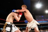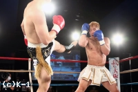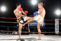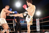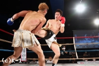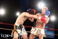 2R、斉藤はミドルから入ってパンチにつなげる。大泉はフック・アッパーとパンチを振るい、ブロックされるが次第に距離が合ってくる。左ストレート、右フックと当てる大泉。だが、ここで偶発性のバッティングがあり、大泉は右目下が腫れ上がる。ドクターチェックの後で再開。今度は大泉のローがローブローとなってしまう。