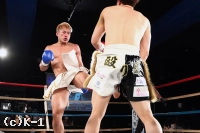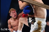 3R、斉藤は遠い間合からのパンチの後ヒザを突き上げるが、これは首相撲からのもので反則の注意を受ける。大泉はこのヒザで額をカット。ドクターにチェックを受ける。再開となるが斉藤はイエローカードで減点1となる。大泉は吹っ切れたように左ストレートと右フックで猛攻するが、額の傷が開き血が流れてくる。斉藤はこれをクリンチや首相撲で押さえてしまい再度のイエローカードを受ける。消耗の見られる斉藤は距離を取るが、右ストレートのカウンターで大泉をフラつかせる。判定は27−26(大泉)、27−27、27−27でドロー。延長戦に突入となる。