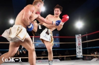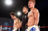 「(試合を振り返って?)1Rで二回ダウンを取ったんで、ちょっと安心しました。安心して、逃げるわけじゃないけど、ちょっとポイントアウトしようと思ったら、追いつかれはじめて。ヒザ蹴りとか練習したんですけど、掴みでやっちゃったから減点になって、3Rで追いつかれちゃいました。コーナーでセコンドに『次取らないとやべえぞ』って言われて。僕、本当は1R決着とか多いんで、あんまり延長とかやりたくなかったんですけど、『コレ、気合入れないと逆転されるな』と思って、最後はけっこうがんばりました。