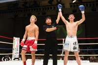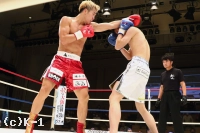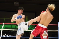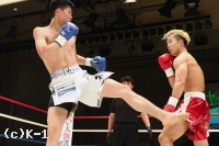 3R、松本は自ら下がって蹴りの距離を作り、左ミドルと右ローで西元をとらえる。パンチを回転させる西元だが、松本はやはりこの打ち終わりに右ストレートを返し、西元を懐に入らせない。左ハイキック、三日月気味の左ミドル、右ローととらえる松本。西元も強打を振るうが、クリーンヒットは得られず終える。判定は30−29、30−29、29−28の3−0で松本。パンチの西元に対し、松本が蹴りを活かして勝利した。