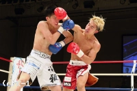 2R、松本はやはり距離を作って左ミドルと右ローキック。しかし西元は踏み込んでの右クロス、距離を詰めての左ボディと松本に圧力をきかせていく。しかし後半に入るとこのプレッシャーをしのいだ松本が息を吹き返し、西元の打ち終わりに右ストレート、左フックとヒットを上げる。
