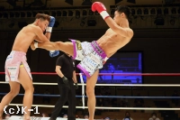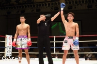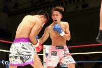 3R、池田はダウンの挽回に前へ出る。しかし橋本は蹴りをブロックした後で左のフックとストレート、右フックと振るい池田を下がらせる。接近戦でヒザを突き上げる池田だが、橋本はボディを交えた回転を止めず、右フックと左ストレートでジリジリ池田を下がらせていく。判定は30−27、30−27、29−27の3−0で橋本。これで戦績を2勝2敗のイーブンとした。