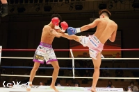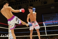 1R、池田はオーソドックス、橋本はサウスポーで互いにロー、ミドルを蹴り合う。170cmと上背のある池田はミドルを放っていくが、橋本は動ぜず、左ボディストレート、右フックと力のこもったパンチを振るっていく。池田もガードを高く上げてこのパンチをブロックし、ミドルと接近してのヒザ蹴りで攻める。