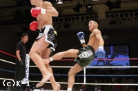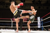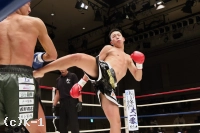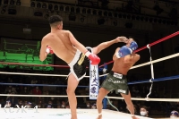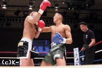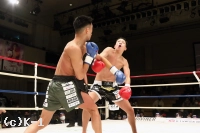 2R、距離を取る黒田に多久田は左ローを当てていく。黒田がミドルからジャンプしての回転蹴りを見舞えば、多久田は後ろ回し蹴りを返す。黒田はロングレンジの蹴りに惑わされず左フック、左ボディストレートをヒット。蹴りを主体に進める多久田だが、終盤左フックを当てる。だが黒田も左フックを当て返して終える。