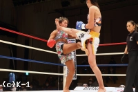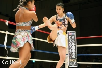 3R、やはり紗依茄は間合いを遠く保ち、AIKOを前蹴りで妨げる。意を決し前に出て連打で迫るAIKOだが、紗依茄が逆に右ストレートをカウンターで決めダウンを奪う。立ち上がったAIKOをやはり紗依茄は懐に入れさせず試合を終える。判定は30-27、30-27、30-27の3-0で紗依茄。16歳のデビュー戦を勝利で飾った。