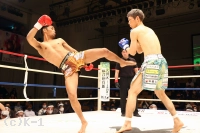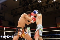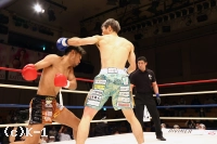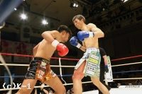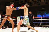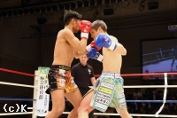 2R、大沢はやはり距離を取って構え、そこから右ロー、踏み込んでの左ボディフックと入れる。そしてサウスポーに変わった大沢はローキックを放つが、これが再びローブローとなってしまい、川﨑のダメージ回復に時間が取られる。大沢には警告が与えられる。大沢は再び距離を開け、横蹴りやミドルで川﨑を懐に入らせない。