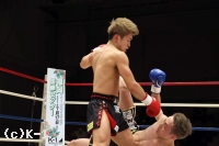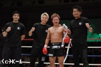 「本当に強かったです。気合いの勝負で、気合いでギリギリ勝てました。お互いガムシャラというか気持ちで前に出て攻撃を出して…という感じだったと思います。こういう試合で勝てたことは自信にもなるんで、本当に勝ててよかったです。(ヒザ蹴りは?)効いてないです。(今後の目標は?)もっと上の舞台で、K-1や海外の大会にも出たいです」