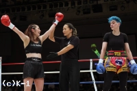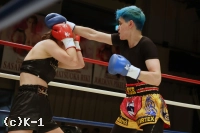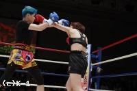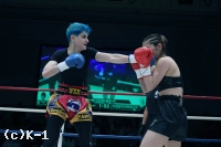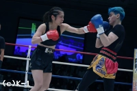2R、芳美は左スイングフック、バックブローと力を込めて振るうが、ファエゼのガードを破れない。ヒザを突き上げるファエゼだが、掴んでの攻撃となってしまいレフェリーから注意を受ける。芳美のパンチを受けた後で左ミドルを返していくファエゼ。芳美もしかし左フックを決め、ファエゼの足を一瞬止める。