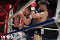2R、ダウンの挽回に向かってくる光佑をしかし愛瑠斗は逆にコーナーに押していき、右ストレート、左フック、右ストレートと決めて光佑をダウンさせ、これでレコードを3戦3勝(2KO)に更新した。
