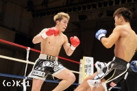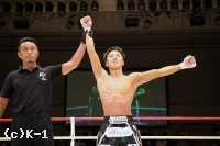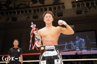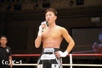 「セコンドに言われた通りに出来て、ボディで倒せてよかったです。(対戦相手の印象は?)3本ベルトを持っていて、ムエタイの選手ということで、もっと蹴って前に出てくるかなと思ったんですけど、思ったより出てこなかったです。(今後の目標は?)森坂選手に勝っている鷹大選手に勝ったんで、王座決定トーナメントに出ていた他の選手、あわよくばチャンピオンの新美選手ともノンタイトルで戦いたいです。まあでもK-1 JAPAN GROUPに来て3戦なので、色んな選手とやっていきたいです」
