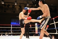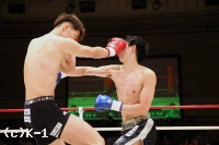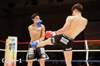 2R、稲垣はオーソドックスからカーフキックを見舞い、続けて右ストレート。塚本は右ミドルで稲垣を遠ざけんとする。稲垣はこの攻撃を警戒しながら右ローを当てていく。そして終盤は左ストレートを塚本に突き刺し終える。