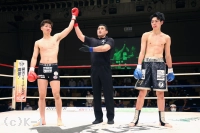 3R、稲垣は前に出て塚本に左ストレート、右フックと力を込める。塚本は右ストレート、飛びヒザと見舞うが、稲垣はすぐに同じ飛びヒザで反撃。目のよい稲垣は塚本のパンチを目先でかわし、右ストレート、左ストレートとパンチのヒットを追加して終える。判定は30-28、30-28、30-29の3-0で稲垣。1年半ぶりとなる試合で勝利した。