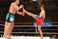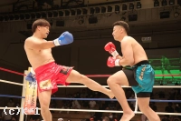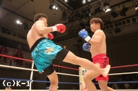 2R、工藤は前進して右ストレートを強振。しかし中平もこれに打ち返して応戦し、ローキックを効かせる。さらに中平は工藤の右フックを空振りさせて、左ローを打ちつける。ここで工藤がパンチをまとめ、そこから突如バックキックを放つと、これが中平のわき腹をとらえ、中平がダウン。そのまま中平は立ち上がることができず、工藤がリザーバーとなった。