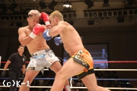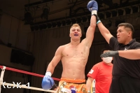 1R、サッタリはジャブで先制して右ボディストレート。谷川がこれに応じて前に出るが、左フックでとらえて先制ダウンを奪う。サッタリはフルスイングのフックの後で後ろ回し蹴り。谷川もガードを固めてジャブとローで反撃。谷川は来いと気合いを見せてローを蹴っていく。そしてサッタリに右ストレート、右ロー、ヒザとサッタリを攻める。しかしここでサッタリが右フックを側頭部に打ち込み谷川が前のめりに倒れ、サッタリが2連続KO勝利でベルトを巻いた。