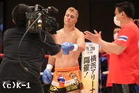 「押忍! 今日応援してくださったファンのみなさん本当にありがとうございます。これは私のキャリアの最後ではなくスタートだと思っています。マネージャー、ジムのみんなありがとうございます。日本のみなさんが大好きです。これからも応援よろしくお願いします。これからもファンのみなさんに喜ばれる試合をして、K-1のベルトを獲りたいと思います。自分のことを応援してくださっている母国のファンにもお礼を言いたいです」