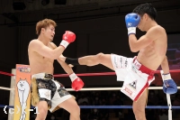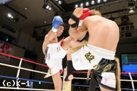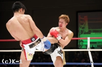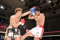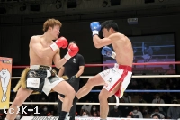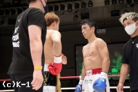 「自分のなかのイメージでは1Rで終わって、マイクしてって感じで思ったんですけど、1Rにタイミングよくもらったパンチでダウンをもらってしまって。力みが凄く出て、インターバル中にセコンドからも『固すぎんねん!』と怒られました(苦笑)。その力みが最後までとれず、バテたところで力みが抜けて、振り抜けたパンチで倒すことができました。ギリギリでしたね。実力的には僕の方が上やと思うんですけどダメなところが出ました。(対戦相手は)イメージ通りでしたね、パンチ力もスピードも動きのパターンも。運悪くダウンを取られたパンチをもらったというだけです。(今後の目標は?)大和哲也選手と試合することがK-1 JAPAN GRPUPに参戦した時からの目標です。その目標は変わらず、ぶれずに貫き通したいと思います」