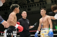 「久々の試合だったんで勝ててホッとしています。(対戦相手は)もっとバンバンミドルとか蹴ってくると思ったら、思ったより近くまで行けて。ただヒザ蹴りがちょっと怖かったです。(約2年ぶりの試合で仕上がりは?)結構前もって動いてきたんで体の調子はよかったです。いい感じで動けました。(今後は?)復帰戦でいい勝ち方ができたんで、もっともっと頑張っていきます」