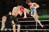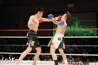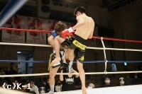 2Rもバックブローに左右の目まぐるしいパンチで攻める斉藤だが、松本のガードを破れない。鼻血が見られる松本だが、致命的なダメージは負わない。総合の経験もある斉藤は重心を低くした構えから左右のフック・アッパーとワイルドに振るう。だが松本はやはりガードで弾く。3R、大振りしてくる斉藤の内側を抜くように松本は左右ストレートで攻める。斉藤をコーナーに詰め、松本はパンチからヒザに繋いで攻勢を作る。斉藤も右ストレートを振るって反撃するが松本を下がらせられない。判定は30−29、30−28、29−28の3−0で松本。高学歴の異色ファイター対決を制した。