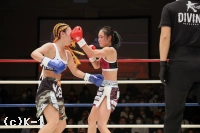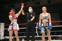 「久々の試合で、久々の勝ちでめっちゃうれしかったです。(対戦相手の印象は?)最後まで気が強くてずっと前に来て、むっちゃやりづらかったです。(今後の目標は?)今日みたいな試合内容じゃ6月のK-1女子大会にアピールできないと思うんですけど、6月までにしっかり仕上げるんで(K-1女子大会に)出れたらいいなと思います」
