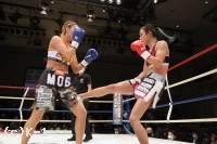 2R、MOEは左ミドル、前蹴りで森川をパンチの間合いに入らせず、ヒットを許さない。しかし進入を阻んでも森川は前進を止めず、右・左のフックでMOEを襲う。しかしMOEは距離をあけ、ジャブと蹴りを当てる。