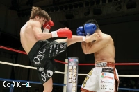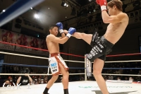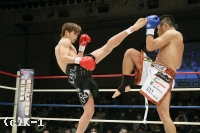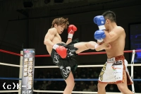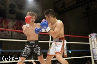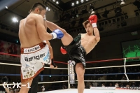 2Rも立基は間合いを保ち、変わらず右ミドルと左カーフを当てていく。これに対し秀樹は右フックと左ストレートを振るって迫るが、やはり立基に距離を取られる。そこから間合いを詰めるのに成功した秀樹だが、立基に偶発性ではあるもののバッティングを受けてしまう。