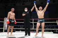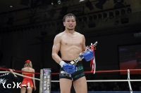 「山崎選手はずっと尊敬していた選手で、僕の憧れとマラット・グレゴリアンと勇敢に打ち合って、ホンマにすごいなと思ってました。そうやって尊敬してるからこそ絶対に勝ちたいと思って、テクニックでは足元にも及んでなかったんですけど、僕にはパワーしかないと思っていたんで、それでねじ伏せて何とか勝つことが出来ました。(対戦相手の印象は?)想像していたようにテクニックがあって、僕の攻撃にカウンターを合わせて来て。効いたところはありました。でも逆にパワーが通用するところもあって、ローキックを蹴り続けてダウンを取ることができました。本当に諦めずにローキックを蹴れたからこそ勝てた試合やし、蹴り続けていなかったらここでしゃべっているのは山崎選手やったかもしれないし。本当に勝ててよかったです。(今後の目標は?)これといったものがあるんですけど、まだ口にする資格はまだないと思っています。一戦一戦勝って、目標をみなさんの前で言えるような選手になりたいです。まずは与えられた一戦一戦勝って、お客さんを喜ばせられる選手になろうと思います