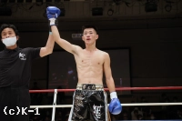 「初めてKO勝ち出来てうれしいです。(対戦相手の印象は?)予想通りでした。(今後の目標は?)早いうちにKrushのベルトを狙いに行くので楽しみにしてい下さい」
