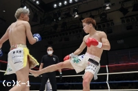 3R、小松は伸びのあるジャブでとらえ、そこからミドル、ローで啓斗をとらえる。啓斗もローを返すが、小松を下がらせるまでには至らない。小松のローに啓斗は右ストレートをカウンター。しかしその後は小松がジャブから左右フックを繋いでリードし試合を終える。判定は30-29、30-29、30-29の3-0で小松。これで戦績を4戦3勝1敗とした。