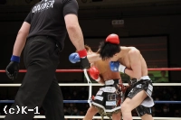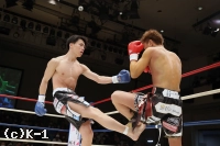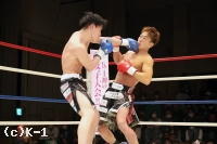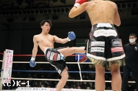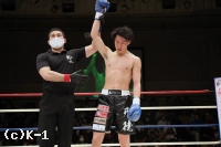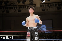 「久々の試合で、1Rはあまり攻撃が出せずに、ラウンドを重ねるごとに攻撃を出せたかなって感じです。(相手の印象は?)気持ちが強くてパンチが上手いなと思いました。(復帰戦を勝利したが?)内容は全然ダメでしたね。右のパンチが全然出せなかったんで、しっかり練習で直していきたいです。(今後の目標は?)もっと強い選手とやって、K-1に出られる選手になっていきたいです」
