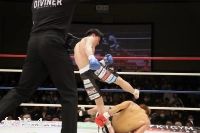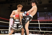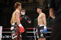 3R、岡嶋はローを蹴って、國枝が前に出てくると右ストレートをカウンターで当てダウンを奪取。続いて岡嶋はステップインしての右ストレートを当て國枝がダウン・転倒するが、ここで岡嶋が放った蹴りが倒れた國枝の後頭部に当たってしまい、國枝のダメージをドクターがチェックする。國枝はこの蹴りのダメージで続行不可能となり試合は終了。