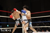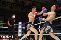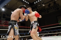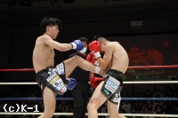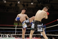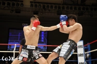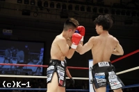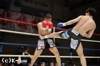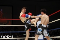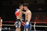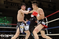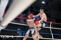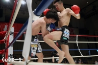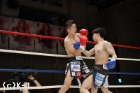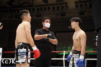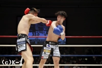 1R、両者まずローの蹴り合いからスタート。寺田はボディフック、アッパーとパンチを打ち分け、そこから右フックでダウンを奪う。立ち上がった稲垣に寺田は再びボディから顔への左フックを打ち込み、顔面前蹴りでも稲垣を襲う。稲垣は鼻血が見られる。