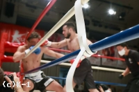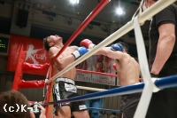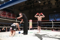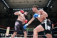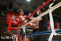 2R、パンチを狙って前に出るブハリにEITOは蹴りで対抗するが、ブハリはカーフキックも打ち込む。EITOをコーナーに詰めたブハリは1R同様に左右の連打で再びスタンディングダウンを与える。挽回に向かったEITOだが、ブハリはカーフキックを打ち込んでダウンさせ、ここでEITOの陣営からタオルが入った。