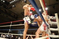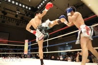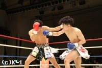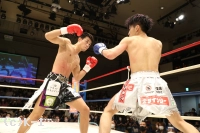 1R、ゴングとともに池田は駆け寄り野田にコーナーを背負わせる。野田はローからスピードあるワンツーを放って池田を後退させる。前蹴りを繰り出す池田だが、これが野田にローブローとなってしまいインターバルが取られる。再開すると野田はパンチに力を込め跳びヒザを放つ。だが池田は下がらず再び野田をコーナーに追い込む。池田の顔への跳びヒザに野田は左フックで反撃する。