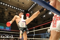 「KOで絶対倒したかったんでめちゃくちゃうれしいです。これから自信を持ってやっていきたいです。(対戦相手の印象は?)イメージ通りでした。(1Rから前に出ていたが?)それは最初から決めていたので。下がってくれたので怖さはなかったです。(野田が下がるのは)過去の試合を見て分かってました。(最初のダウンにつながったバックキックは?)そこまで当たった感触がなくて。何で倒れたのかあまり分からなかったです。(あれは狙っていた?)実は蹴った記憶がないんですよ(笑)。おそらく入るなと思って出したんだと思います。(どんな技で倒そうと思っていた?)三日月蹴りとかボディストレートで倒そうと思ってました。