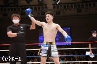 「素直に嬉しいっす。(相手の印象は?)安保選手の代理で『了解です』と引き受けてくれて本当にありがとうございました。試合できてよかったです。次の試合頑張ってください。(今後の目標は?)Krushのベルトを獲りたいのとタイミングよければK-1にも出たいです。押忍」