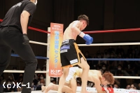 立ち上がる小松だが田中はコーナーに詰め、最後は右ストレートを突き刺しKOした。