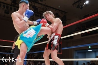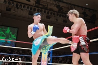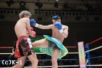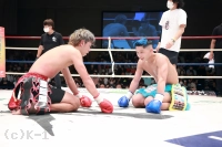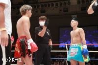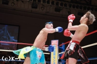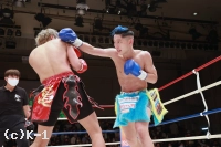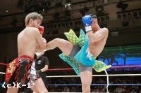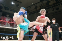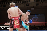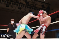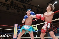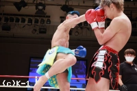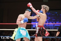 1R、森坂はサウスポーの亀本に左フックの上下打ち、右フック、バックブローとトリッキーに繰り出す。亀本は左右のストレートを伸ばしていくが、森坂は横への動きでさばいてパンチからローを浴びせる。2R、パンチから右ローに連係する森坂。打ち返す亀本だが、森坂は左へステップして直撃させない。攻撃の中に得意のバックブローを織り交ぜる森坂だが、亀本は見切って当てさせない。左ストレートを当てる亀本だが森坂は連続では被弾せず、すぐ攻撃に転じる。