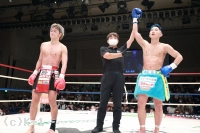 3R、顔面前蹴りを当てる亀本だが、森坂はひるまず距離を詰めてバックキックを顔にヒット。そこから森坂は連打を見せるが、両者バッティングとなってしまい一時中断。再開しても森坂の前蹴りが亀本にローブローとなってしまう。亀本のパンチをヘッドワークでかわし森坂はバックブロー。終盤の打ち合いは森坂が右ストレート、右フックと当て、亀本もハイキックを当てる。判定は30-28、30-28、30-27の3-0で森坂。4年半前に敗れた亀本にリベンジを果たした。