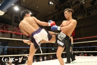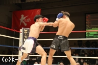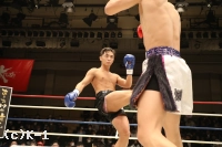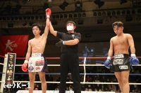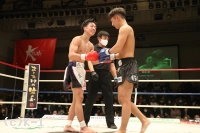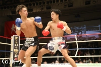再開すると松谷は左三日月蹴りと左ローを蹴り分け、さらに右カーフキック。そして左ストレート、右ジャブと白幡を徐々に翻弄していく。