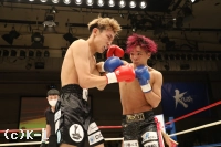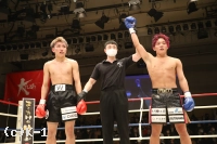 立ち上がった大利は飛びヒザなど反撃するが、児玉はなお左ボディフックを攻勢をキープし終了。