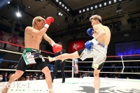2Rもにじり寄る斎藤に松本はカーフキックと前蹴り。斎藤も同じくカーフキックを返す。松本は顔面前蹴りも織り交ぜ、斎藤を懐に入れない。しかし斎藤が右ストレートをヒット。だが松本はすぐ前蹴り、ローと蹴りの組み立てに戻る。だが斎藤はさらに左フックを当てる。
